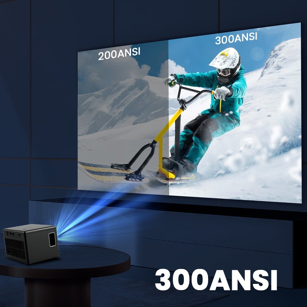 Transpeed Projector 300ANSI Android 10.0 Support 4K 200"screen BT5.2 1280*720P Home Theater Outdoor portable