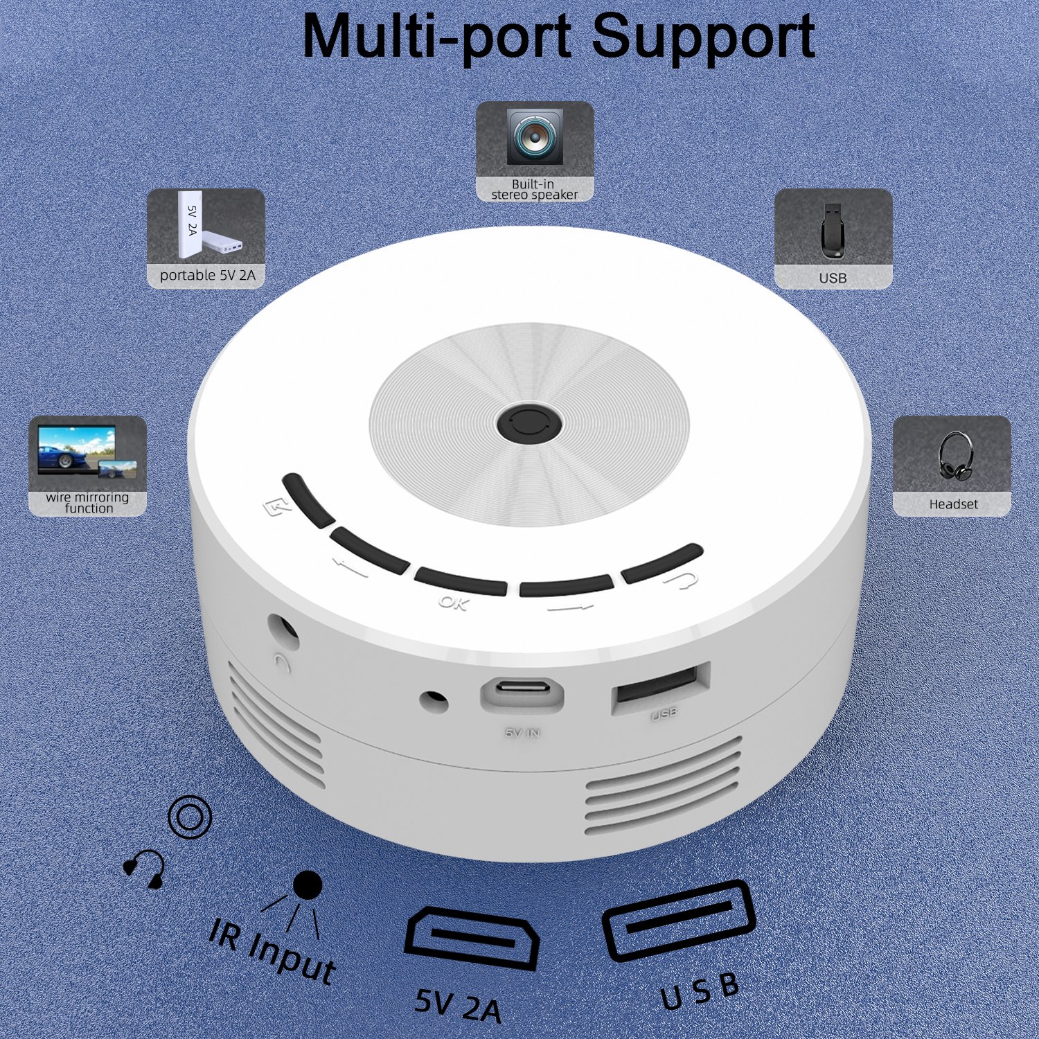 1.[Eyes protection]-With the portable mini projector, children can stay away from mobilephones, ipad and other electronic products, ideal for playing games,watching videos, listening to music, studying