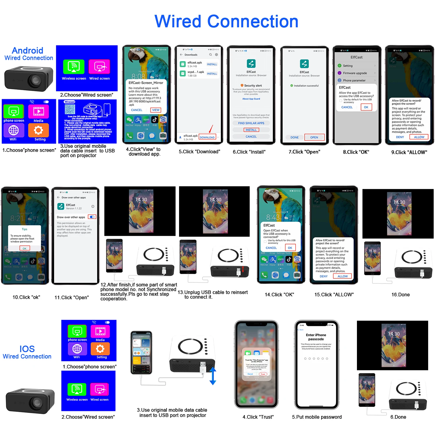 ZRE-AEPRJCTR YT300 Mini Projector MAX 1080P Small Size Big Screen WiFi Bulit in Speaker Portable Home Theater Support Miracast Airplay DLNA