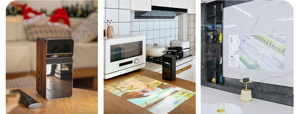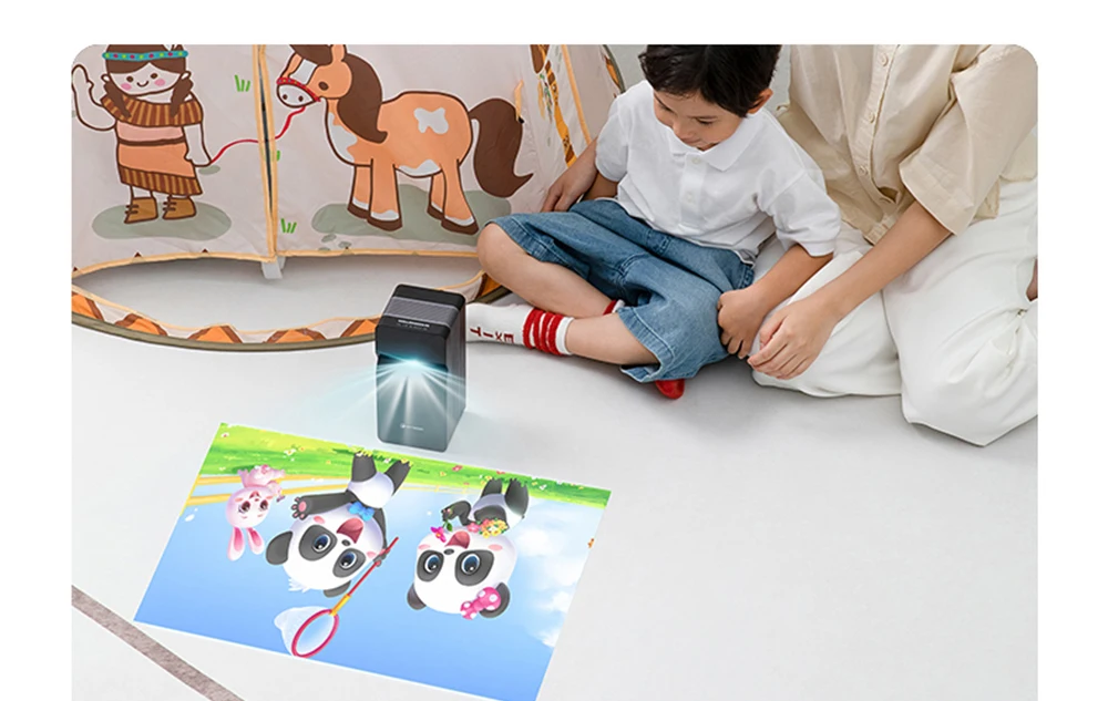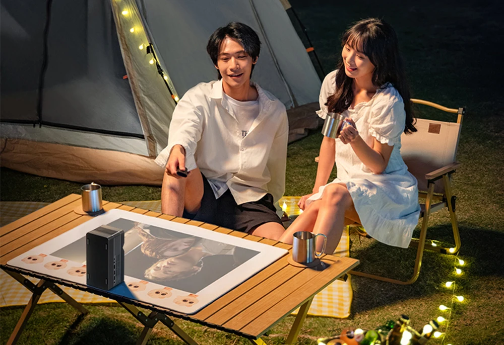 The ultra-short-throw projector only needs to be 28cm away from the wall to project a 100-inch large screen.