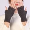 1 Pair Knitted Gloves Half Finger Hollow Stretchy Thick Cozy Keep Warm Solid Color Autumn Winter Men Women Knitted Writing Gloves for Office