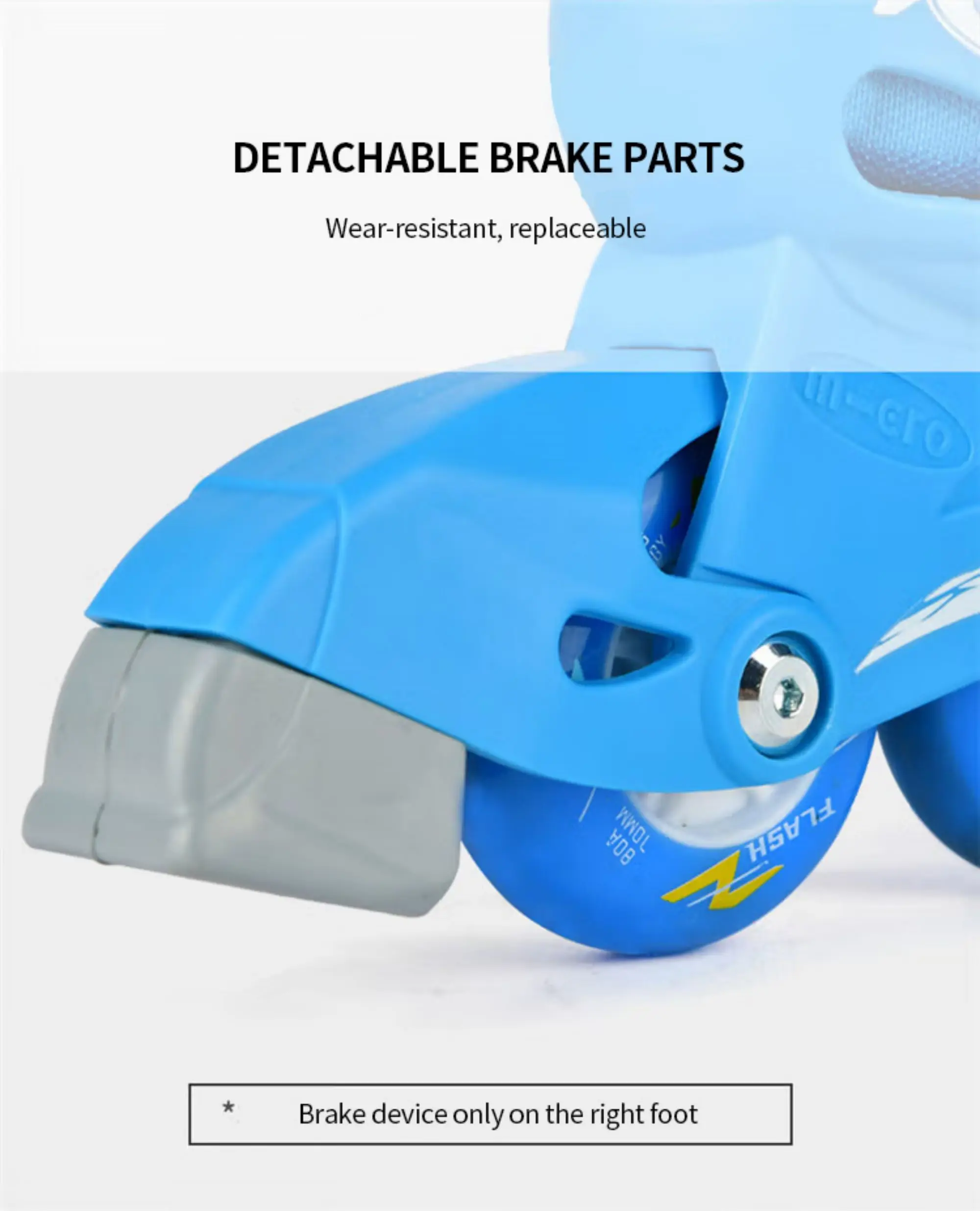 Professional detail-oriented design includes a detachable brake, colorful appearance, EU quality certification, and strong capability to support kids’ progress in mastering more challenging maneuvering techniques.