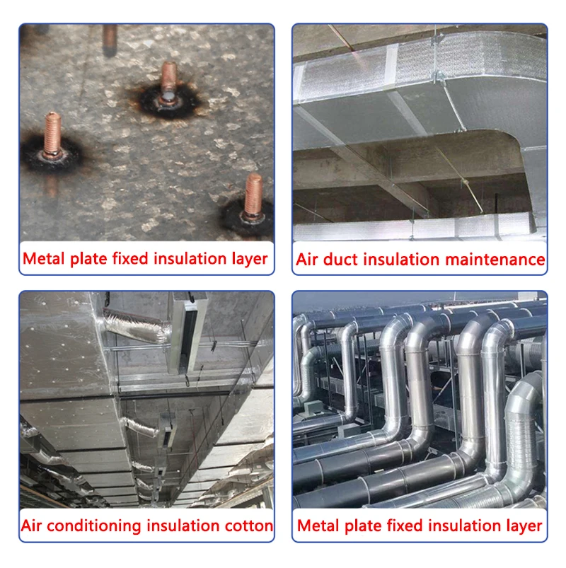 It is widely used, and the welding nail plays the role of fixing the insulation layer in the insulation construction of the ventilation pipe.
