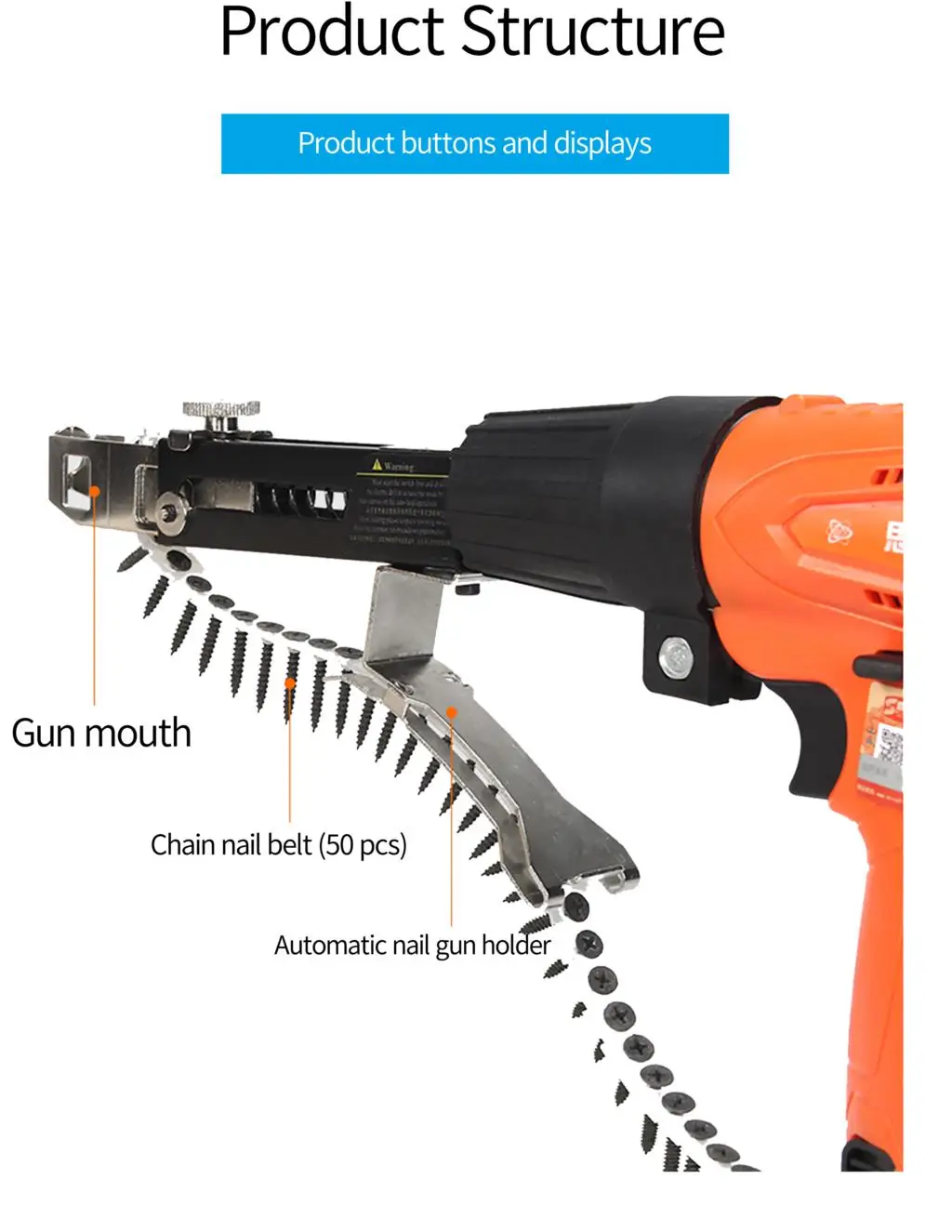 Automatic Chain Nail Gun Adapter Screw Gun for Electric Drill Woodworking Tool