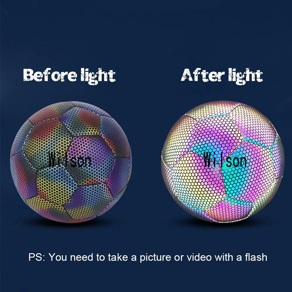 4. Football is the official size 5 football, and when the camera flash is on, it will hologram or glow in photos or videos.