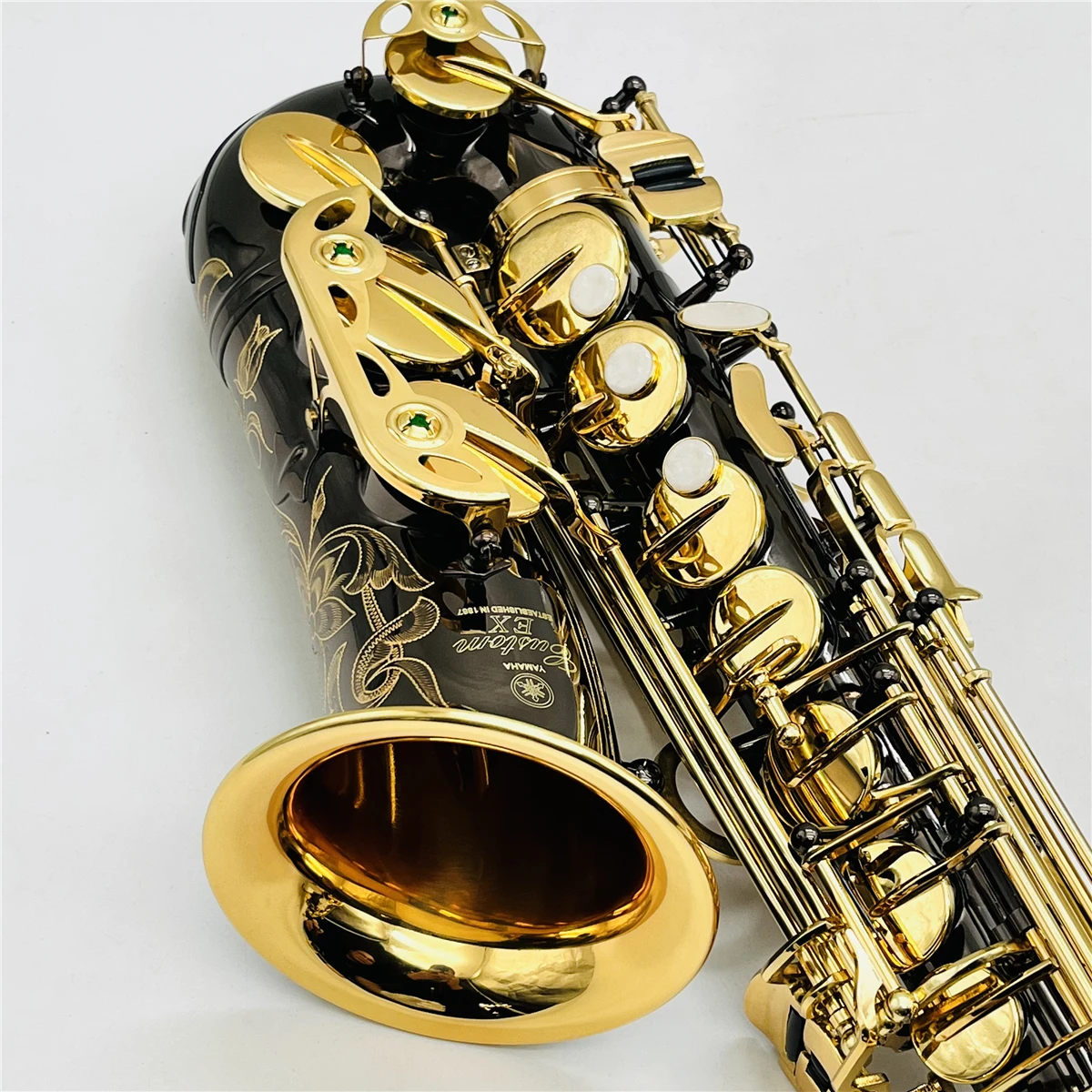 Real Pictures YAS-875EX Alto Saxophone Eb Tuner Black Nickel Plated Gold Carved Body Professional Woodwind With Case Accessories