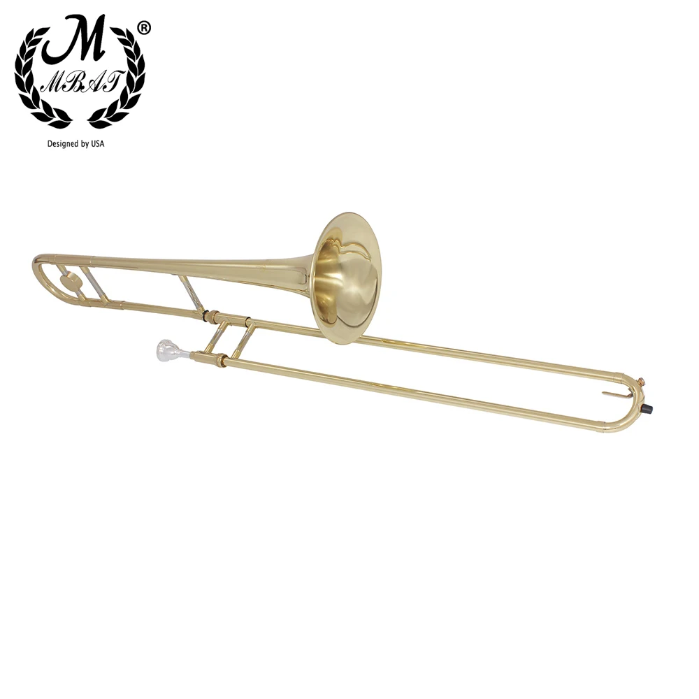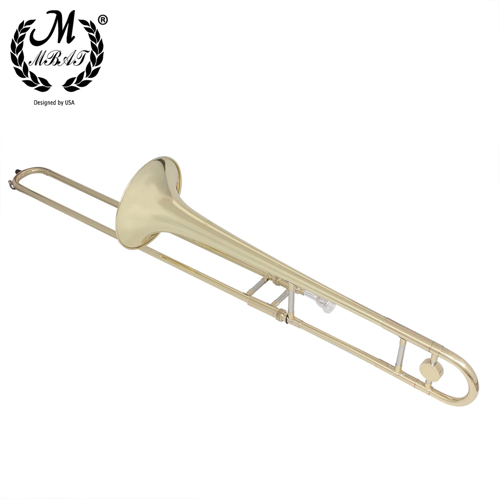 M MBAT Golden Alto Trombone Brass Gold Lacquer Bb Tone B flat Wind Instrument