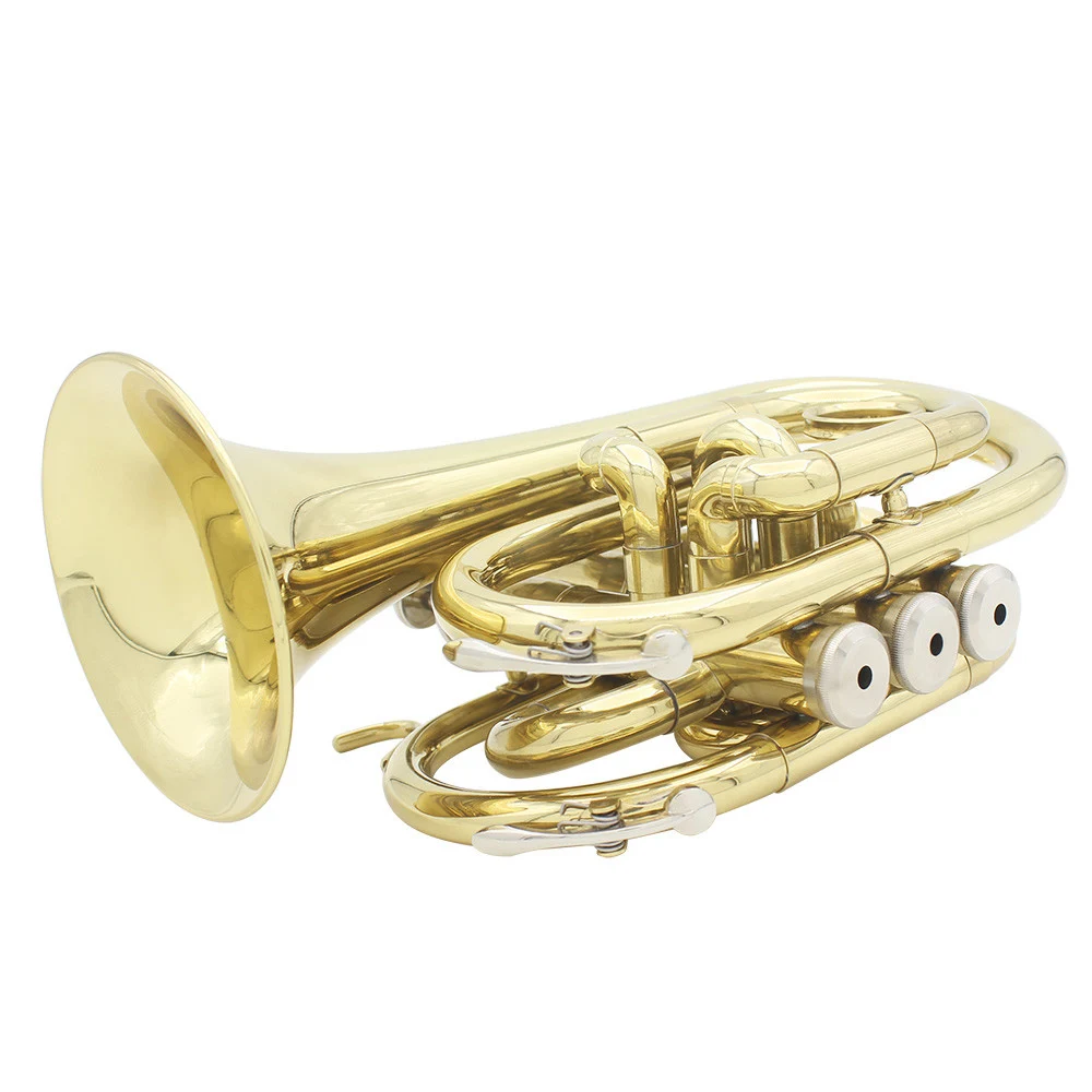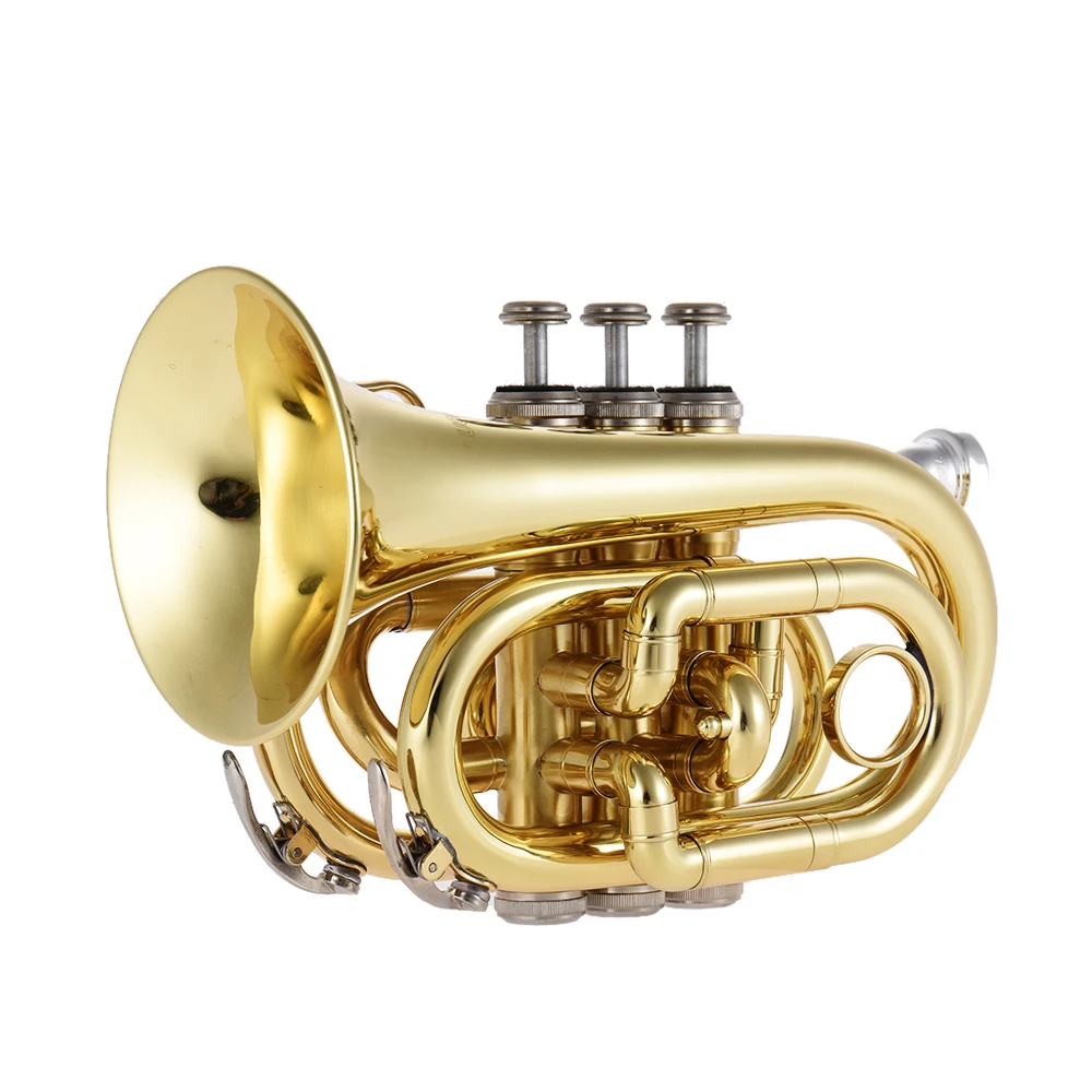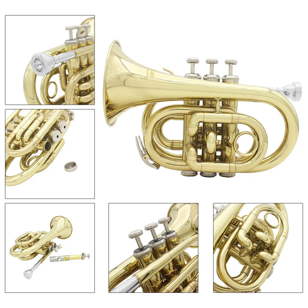 This pocket Bb Flat trumpet is made of high quality brass. It has high-quality components, professional sound. Easy to carry due to its compact size. Ideal for students or beginners.