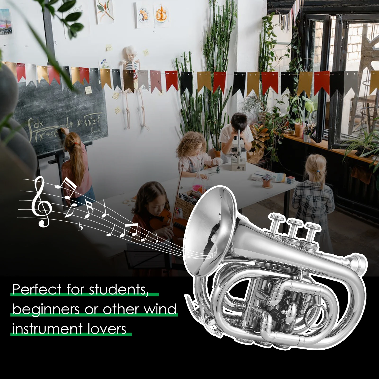 Comes with a trumpet maintenance kit, including 3 cleaning brushes, 1 cleaning cloth and 1 cleaning rod.