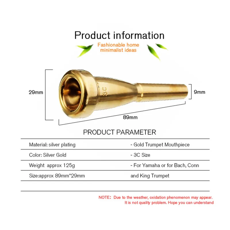 - Bullet Shaped Plated Small Mouth: 3C/5C/7C Trumpet Accessories