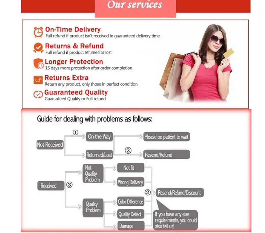 If you aren’t satisfied with out service or any other problems, please contact us before leaving a negative feedback, and we will do our best to solve any problems and provide you with the best customer services.