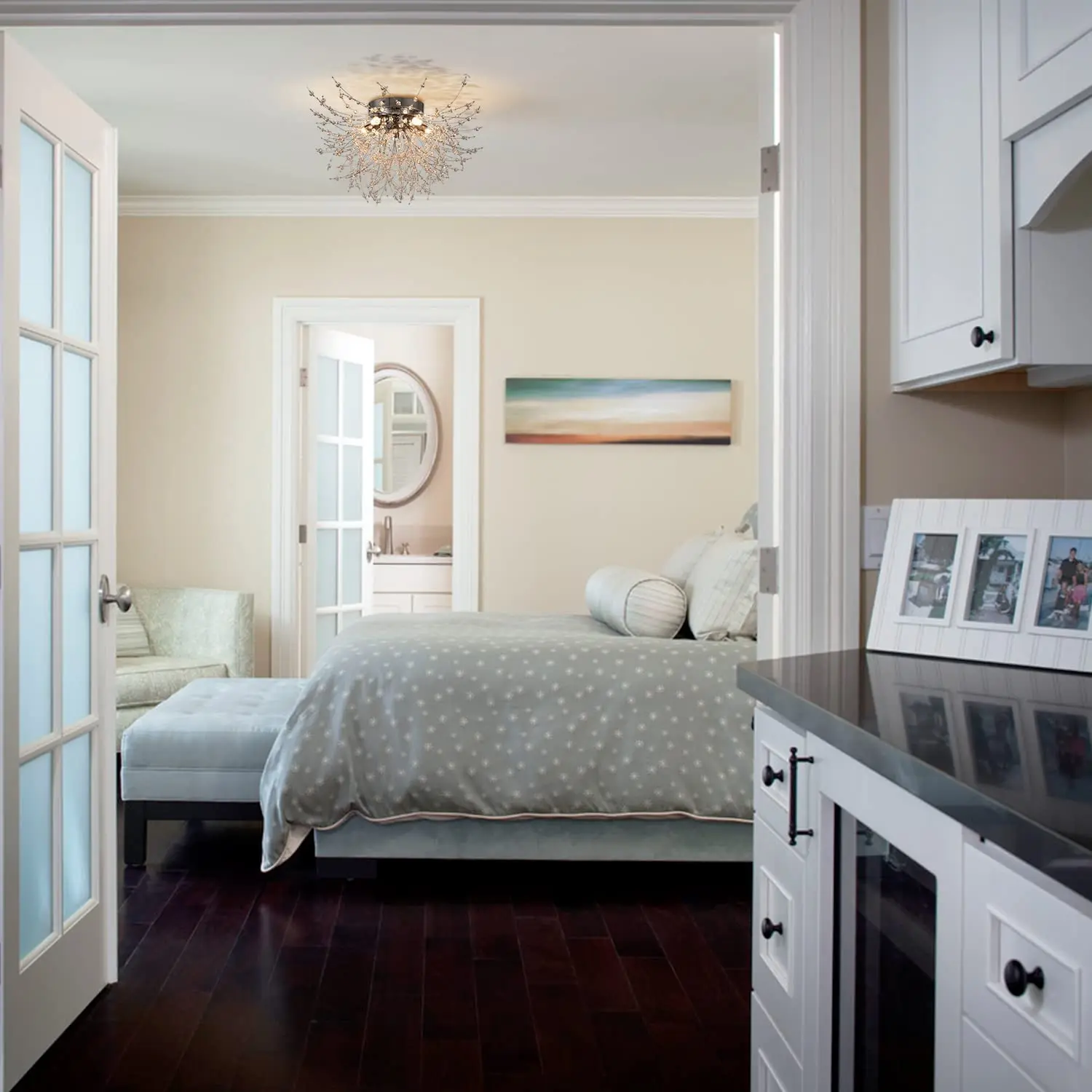 【 Widely used 】 The ceiling light is designed with modern creative dandelion crystal, and the chandelier is compatible with three-tone light Settings, suitable for restaurants, hotels, living rooms, bedrooms, corridors and aisles.