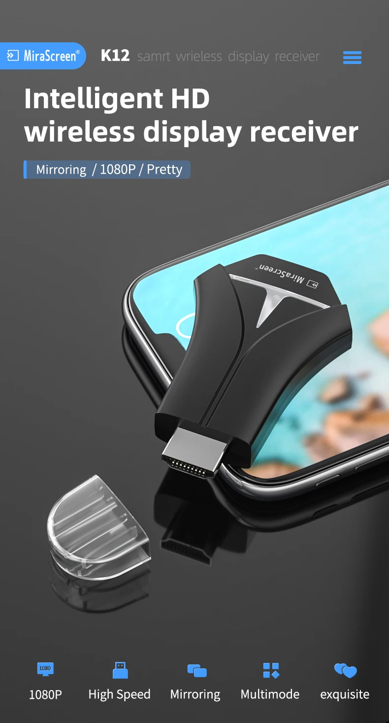 2020 New Mirascreen K12 TV Stick Wifi Display Receiver HDMI-compatible Adapter Stream Cast Mirror Screen Airplay Miracast Anycast Airmirror