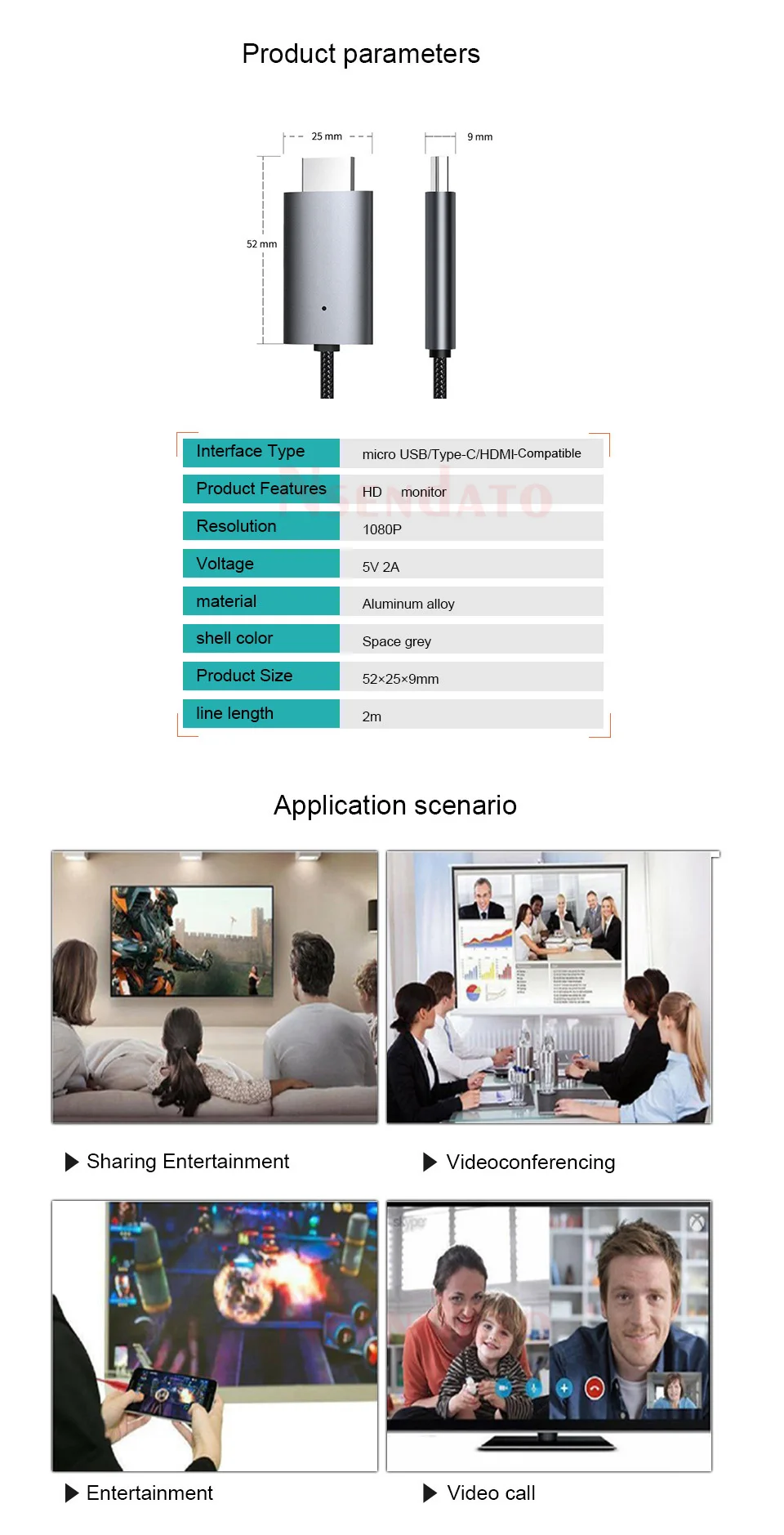 Mirascreen LD39 1080P USB to HDMI-compatible Cable Converter Type C Micro Android 5.0 and Above Cell Phone to HDMI TV Adapter