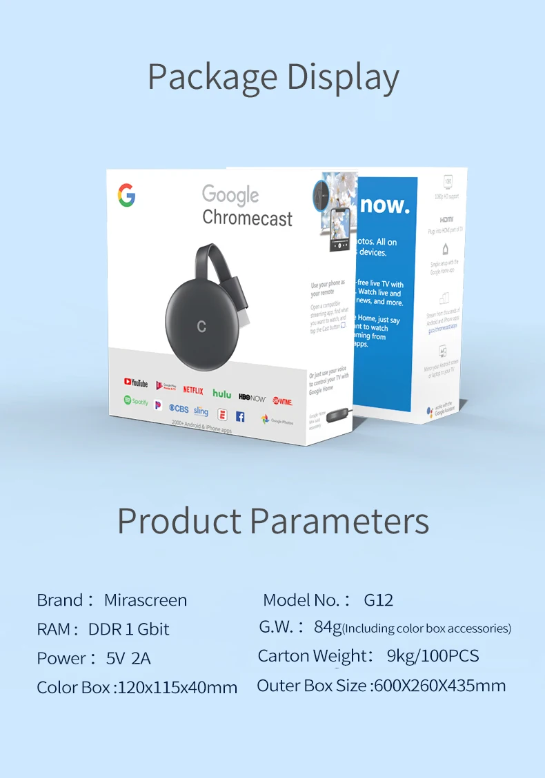 Compared with Google G2/G3 version which only supports Push, Airplay and Miracast mode, this updated G12 version supports Netflix, Youtube, Google and other games videos movies sites, compatible with Android OS 4.0 / IOS 6.0 / Mac or above / Win7 /Windows XP system.