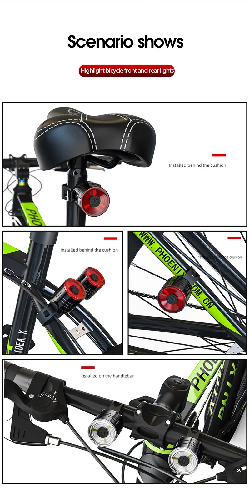 Bicycle Taillight Aluminum Alloy Helmet Night Riding Warning Light Mountain Bike LED Headlight Rear Light Bicycle Accessories