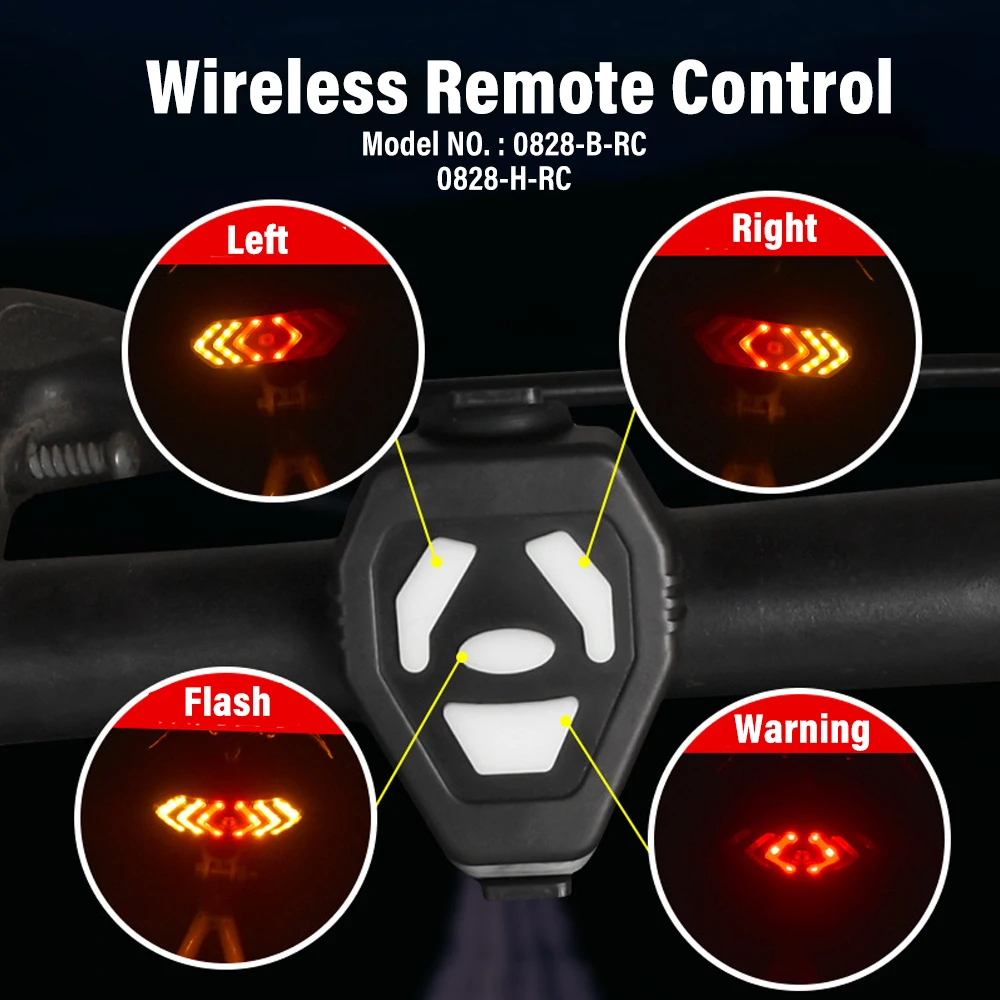 Bike tail light with turning signal has 4 light mode options: turn right, turn left, red steady, red flashing or two modes combined. You can switch bicycle lights between different modes according to your needs and different occasions to get the best lighting experience and protect yourself.