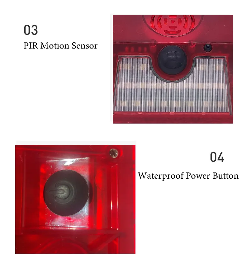 - Model Number: Solar Motion Sensor Detector Alarm Light