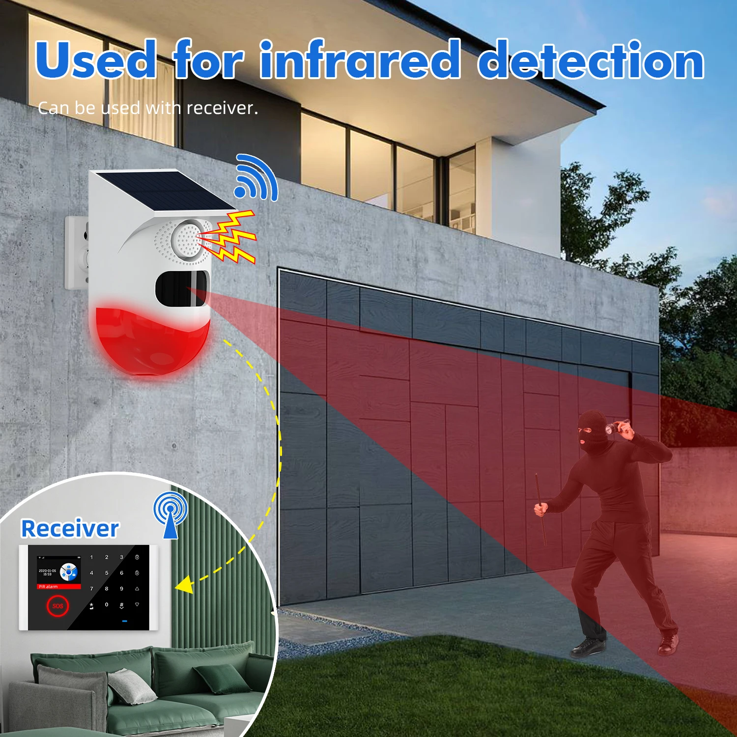 433mhz Solar Strobe Siren Alarm Detector Outdoor Waterproof Home Burglar Alarm System Security Protection For Wifi Gsm System