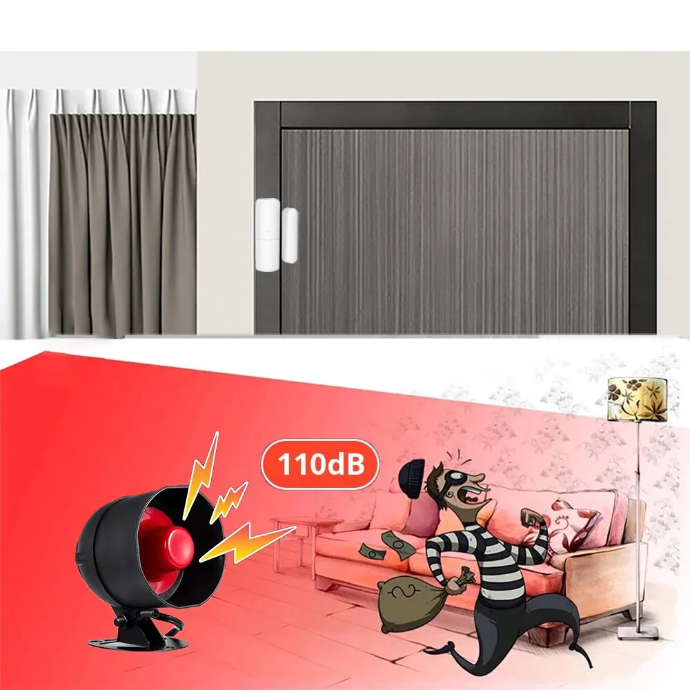 433MHz Wireless RF Siren Alarm System 110dB Indoor Outdoor Siren Horn Siren Loud Speaker for Home Burglar Security Alarm System