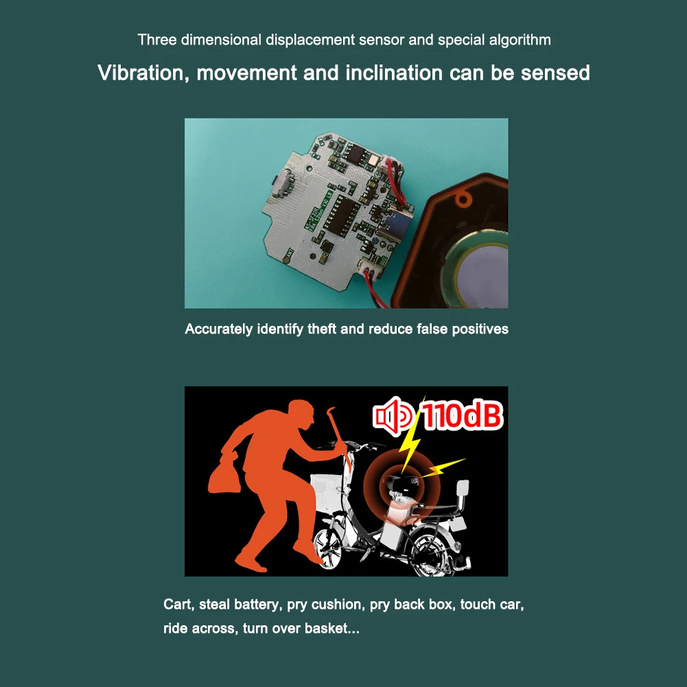 1.3D displacement sensor and special algorithm can sense vibration, movement and tilt.