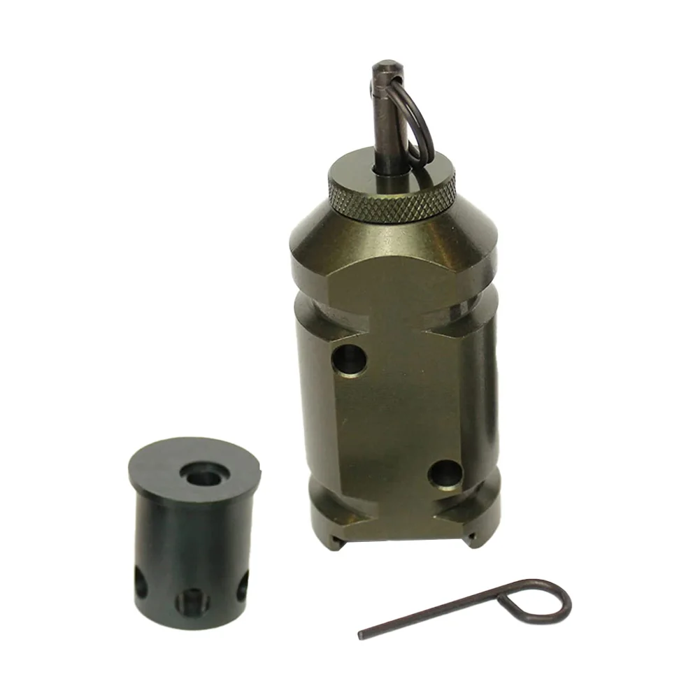 Origin: Mainland China Model Number: Outdoor Tripwire Alarm Material: Aluminum alloy Color: army green (slight color difference) Style: A, B (optional) Size: 7.6×2.5×2.5cm/2.99×0.98×0.98in Volume: ≥ 130db Note: ![]() 1 x Perimeter Trip Alarm