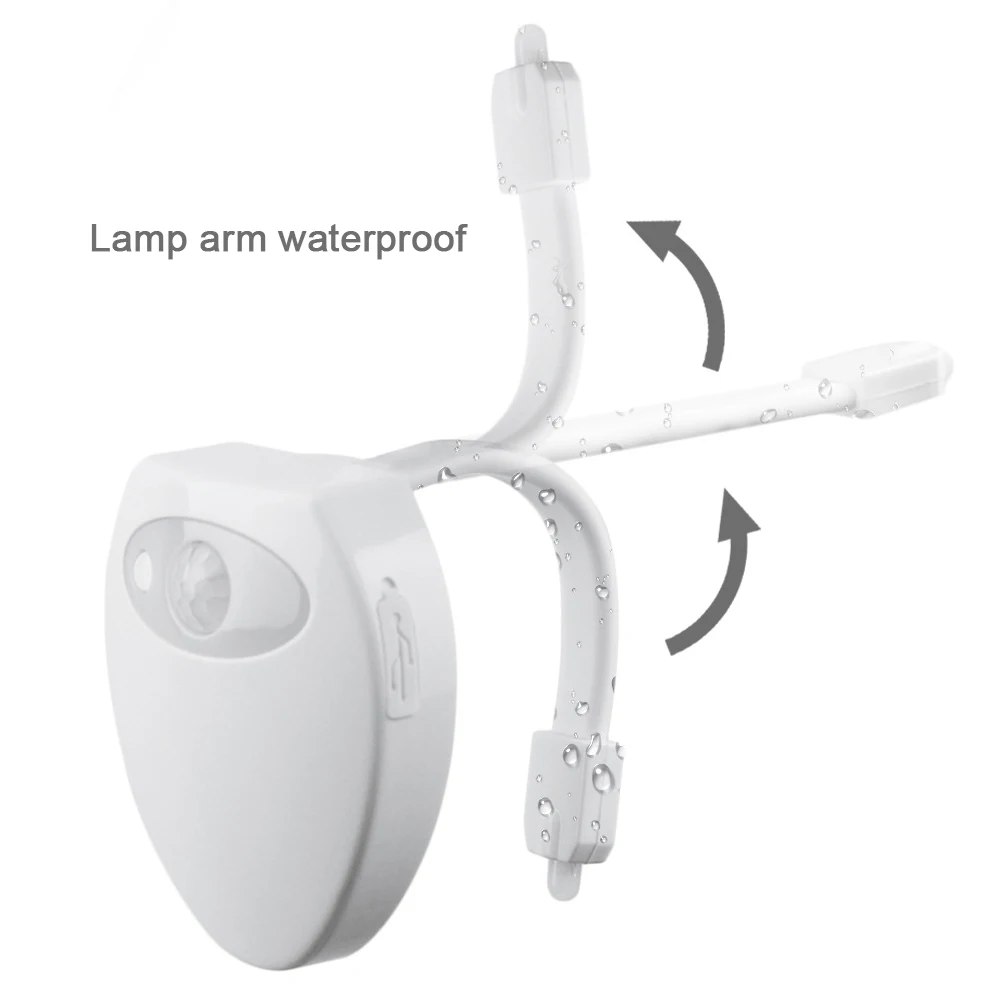Easy to Use: The sturdy but flexible arm can be bent to hang on the side of your toilet bowl, no other tools required! Simply press the button about 3s to turn it on and illuminate your toilet in night. Perfectly fit for any toilets and other purpose as well.