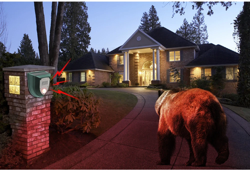 Infrared flashing: the lamp has a built-in sensor, and when a person or animal is detected, the bright spot will flash red and an alarm will sound.Wide range of applications: suitable for field orchards, farmhouses/outdoor breeding farms, building houses/construction sites, outdoor pastures, etc.