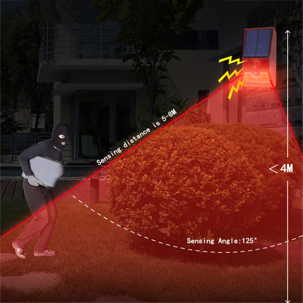Security Alarm Siren For Home Yard Outdoor Multi-function Solar Alarm Lamp Ip55 Waterproof 129db Loud Remote Control Wall Light