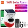 ZRE-FRLM Tuya Smart WiFi Infrared Motion Detector Solar Outdoor PIR Wireless Strobe Siren Detector Sound Alarm Waterproof Remote Control