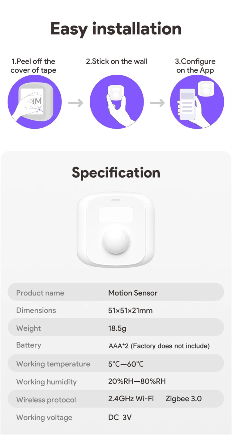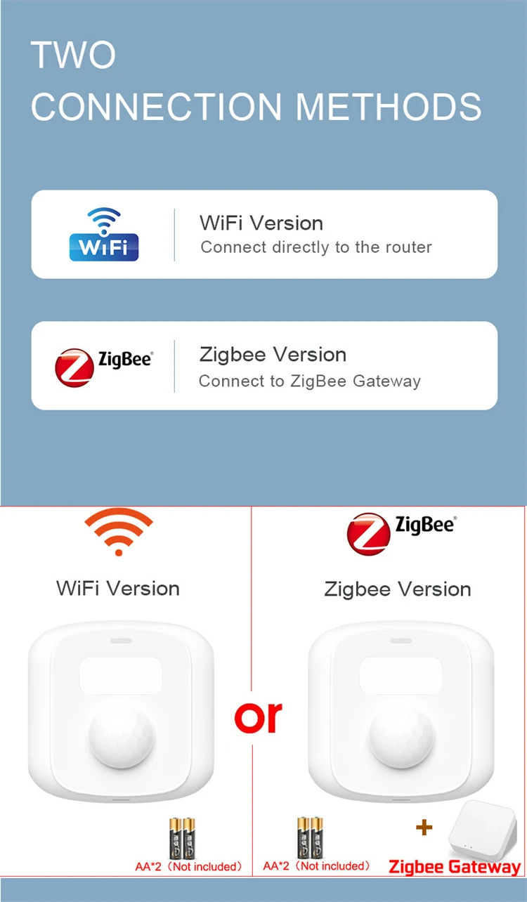 4. WiFi and Zigbee version available. Intelligent linkage control, this sensor can be connected to other smart devices to make your life more convenient. There are WiFi and zigbee version for your option. The zigbee version needs to work with the Tuya Zigbee gateway.