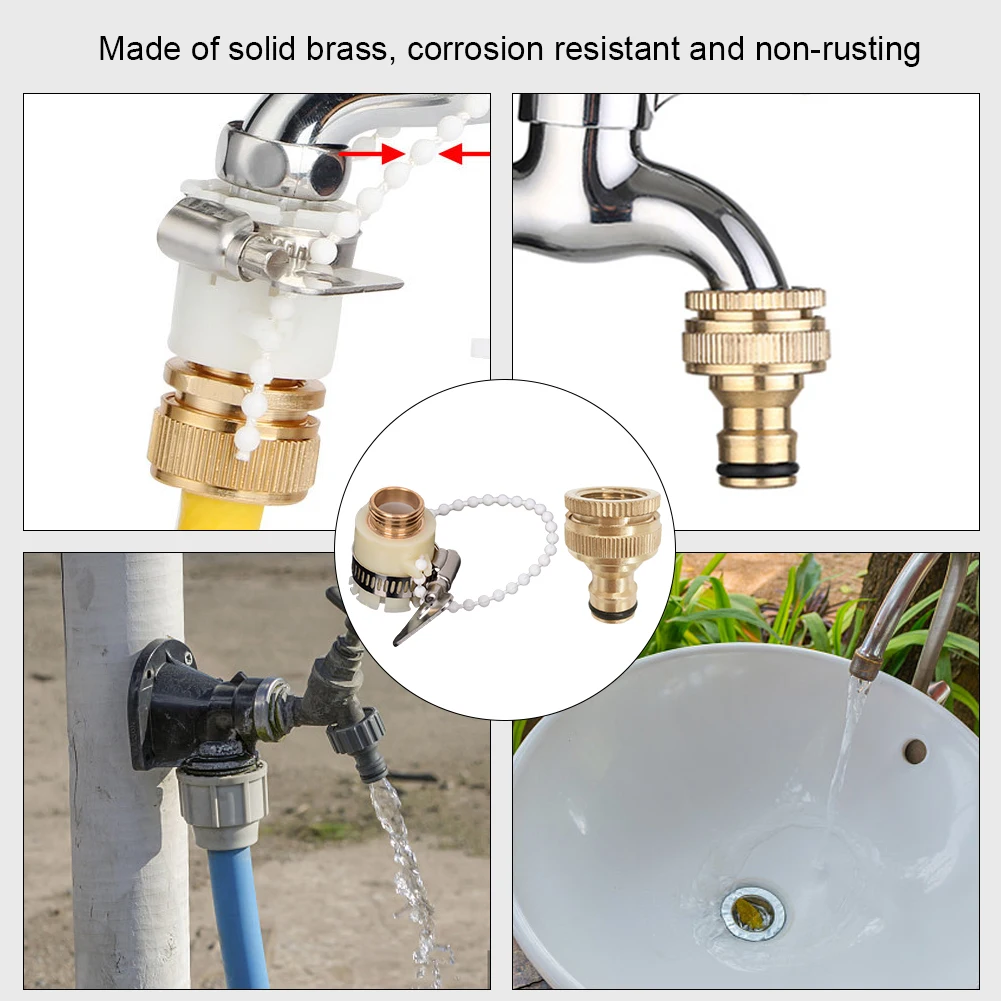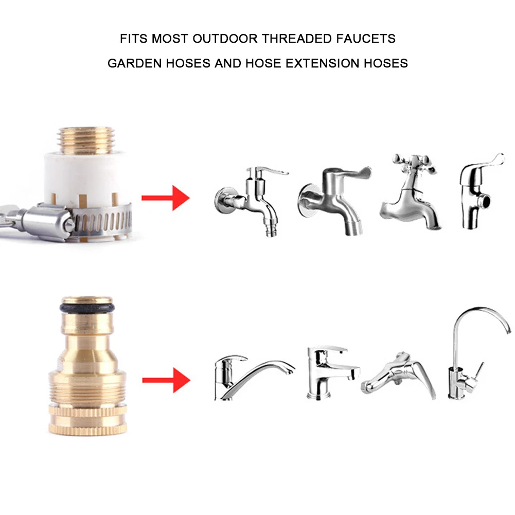 Features: 1. Premium Materials: Our copper hose coupling adapters are made of solid brass, ensuring corrosion resistance and rust-proof properties. The high-quality and durable materials extend the lifespan of the connectors, preventing easy breakage like plastic alternatives. 2. Two Different Types: We offer two variations of quick connect adapters, suitable for most outdoor threaded faucets, garden hoses, and expandable hoses. This ensures compatibility with a wide range of setups and provides flexibility for different applications. 3. Easy Installation: Our solid brass quick connectors consist of two parts. When both parts are intact, the connector can be secured by tightening the top, which then fits into the screw hole. This allows for a secure attachment of the connector to the outdoor faucet and converts it into a standard quick-connect system compatible with standard connectors and most other connections. 4. Durable and Long-lasting: With the use of premium materials, our threaded connectors exhibit superior durability and longevity. They withstand outdoor conditions and frequent use without deteriorating or losing their functionality. 5. Convenient and Versatile: Our brass quick connecters provide a convenient solution for connecting and disconnecting hoses quickly. They allow for easy switching between various attachments, making gardening tasks and other outdoor activities more efficient.
