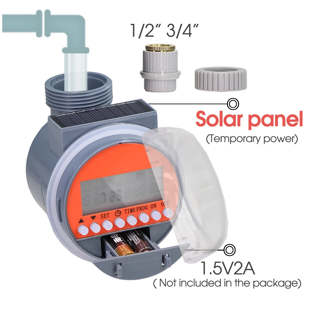 –【SOLAR POWERED】– This solar powered sprinkler timer is designed with the solar panel can absorb the solar energy as power supply, eco-friendly and energy-saving, the rechargeable batteries (Not Included) can be fully charged. Also it supports 2PCS AAA alkaline batteries to supply power.