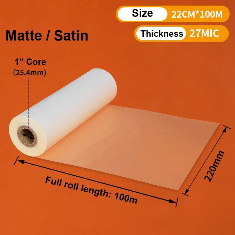 1 Roll Glossy / Matte 220x100m laminating film roll The Bopp thermal laminating film is especially good at laminating on the paper, improving the texture and stiffness of printed matter, to achieve increasing the printed matter grades and water-proof function, keep the air from the prints surface, to avoid faded and become long-tern preservation. It is ideal film for inkjet printing, laser printing, offset printing, coping, letterpress printing, mimeograph, photo, screen print, writing paper etc. |