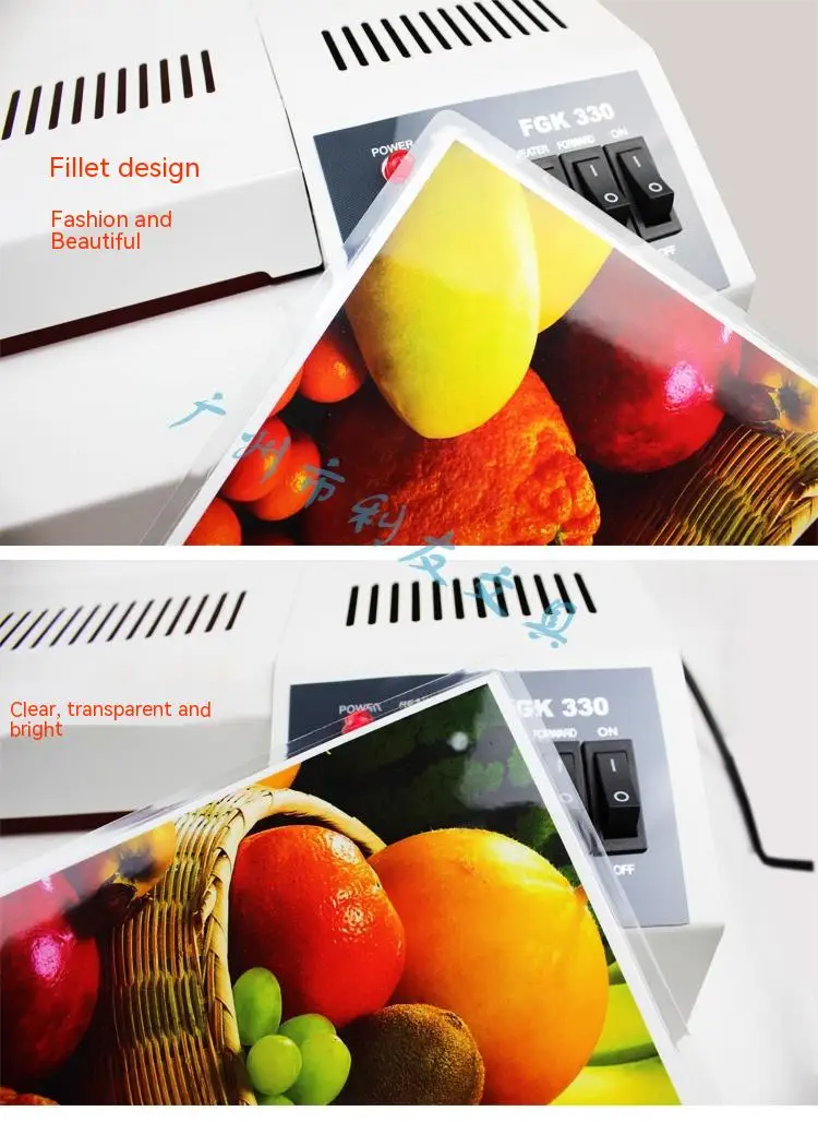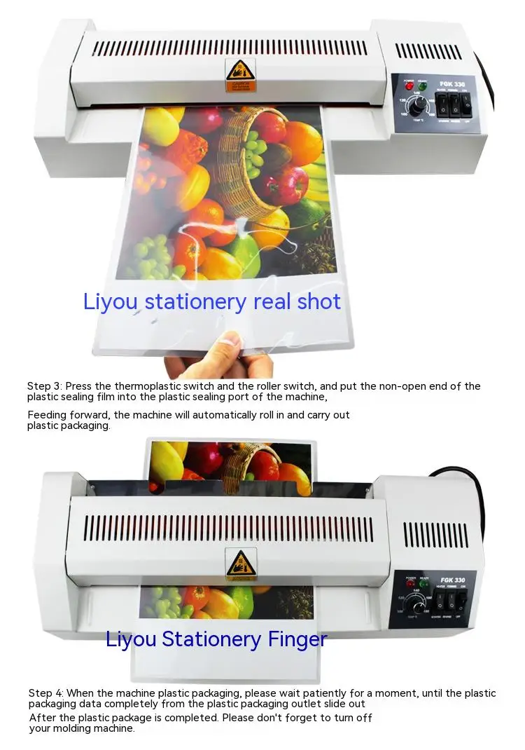 1. Place the document into the plastic sealing film smoothly, adjust the document position to the center, and reserve the uniform edge sealing size around.