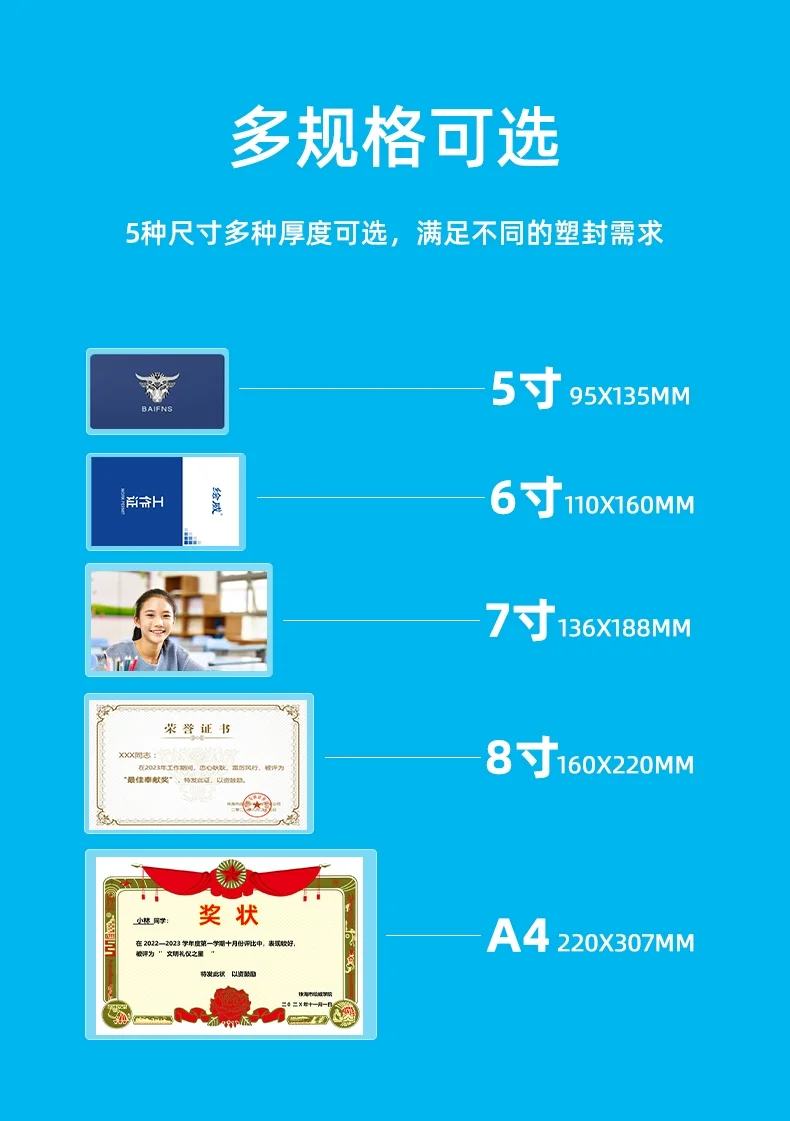 5 Inches Combination: 100 sheets of 5-inch photo paper+100 sheets of 5-inch plastic film
