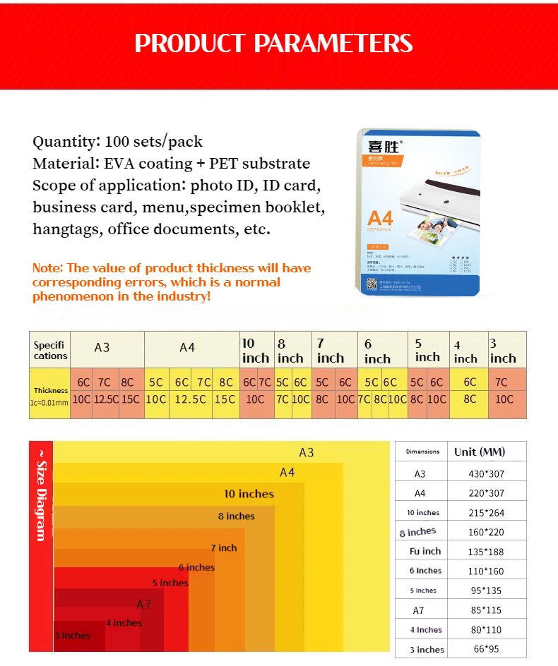 - Specifications: A3, A4, 10 inches, 8 inches,7inches,6inches,5inches,4inches,3inches