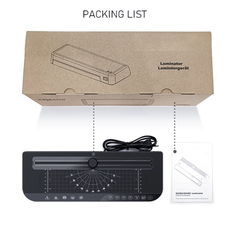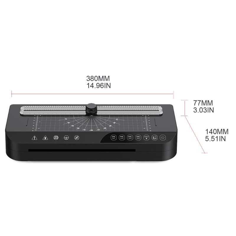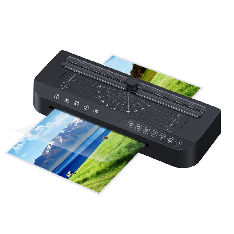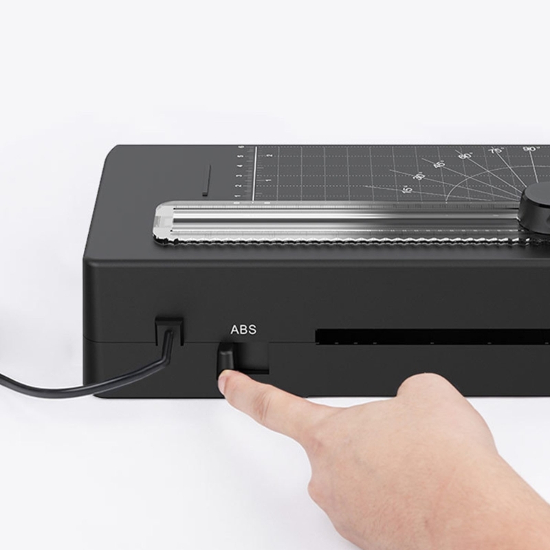 This thermal laminator is equipped with an ABS button, which can quickly and easily clear packages or jammed-pouches when jamoccurs.