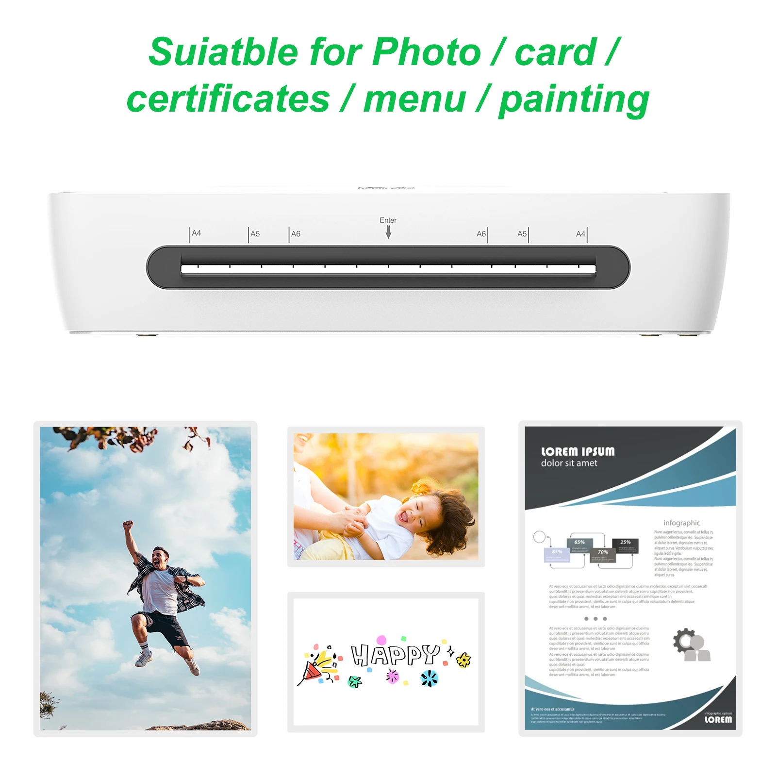 FAST LAMINATING SPEED: With impressive 1 minute heat-up time, and up to 400mm/min laminating speed, faster than most of the laminator in the market, finish  A4 paper size laminating in 45sec (approx.), highly promote your working efficiency.