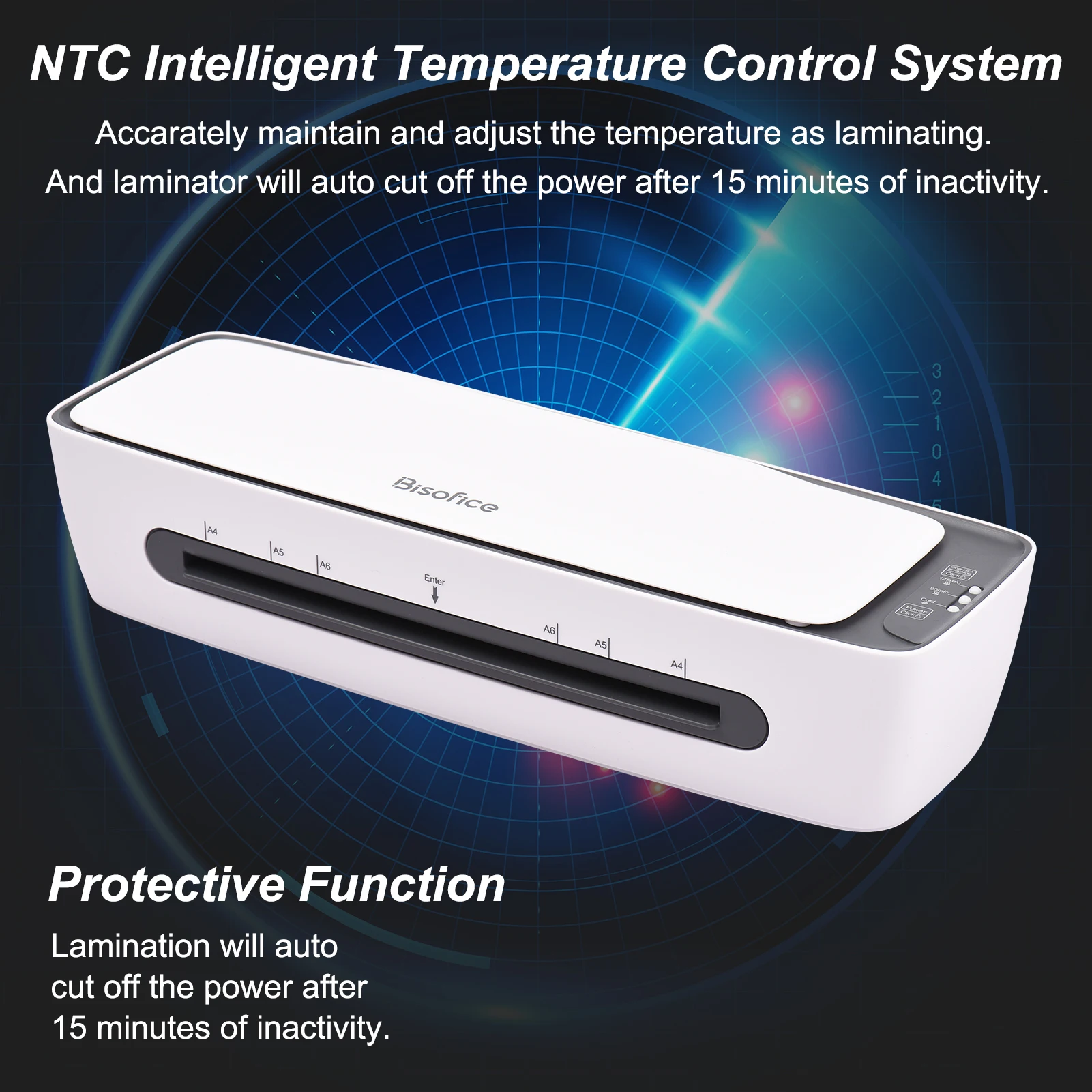 INTELLIGENT CORE CHIP: Equipped with NTC intelligent temperature control system, accurately maintain the temperature as laminating. And laminator will auto cut off the power after 15 minutes of inactivity.