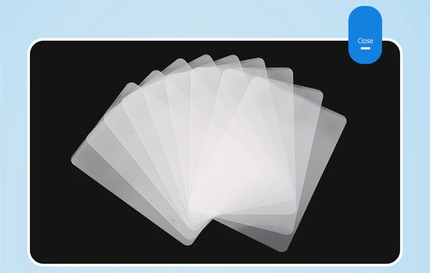 Uses: Plastic sealing film (card protection film) is widely used in the sealing of ID cards, driving licenses, work permits, representative cards, student cards, photos, business cards, menus, drawings, etc.