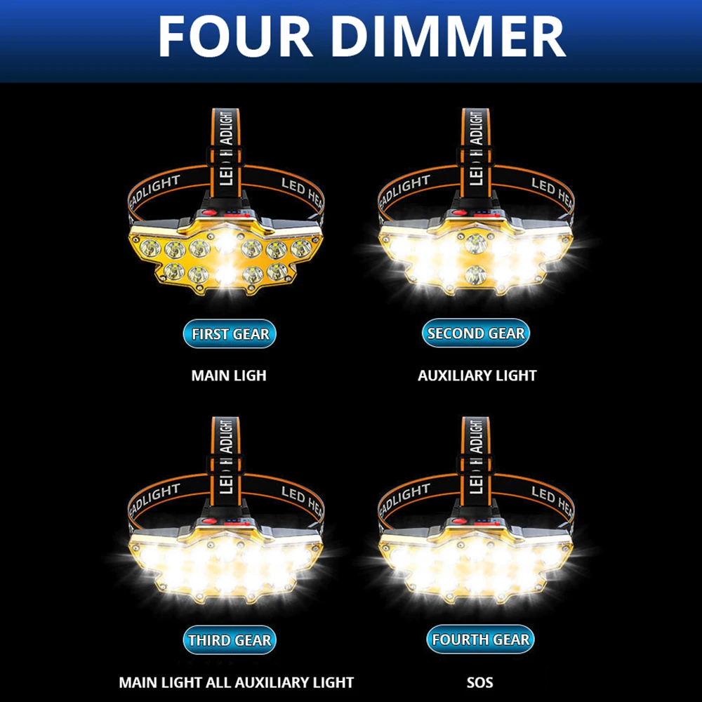 2.4 Lighting modes: Main Light – Car Light – Full light -SOS, this LED headlight is ready to meet all your lighting needs