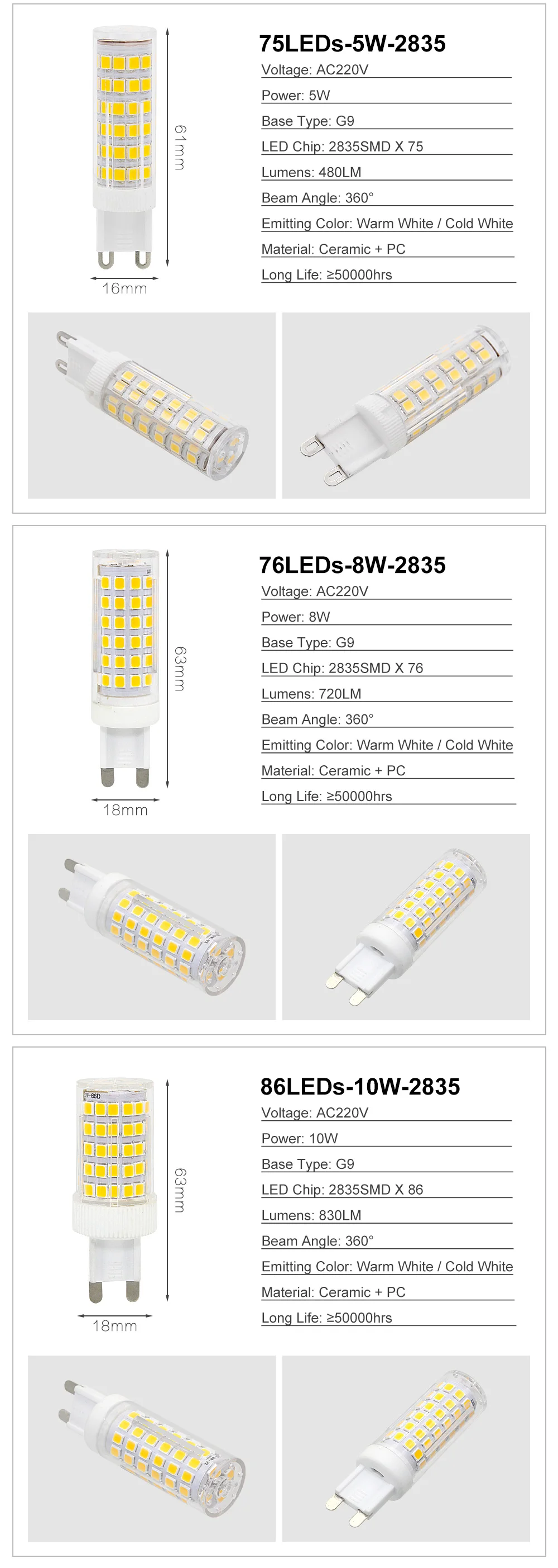 - LED Chip Model: 2835
