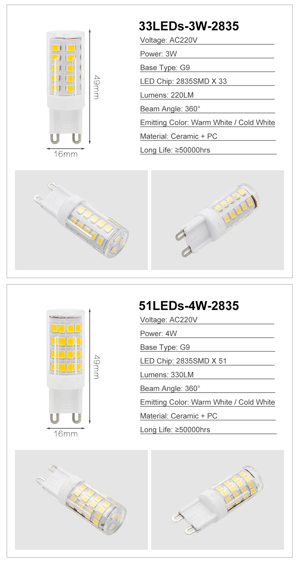 51LEDs 4W 220V 49mm 16mm