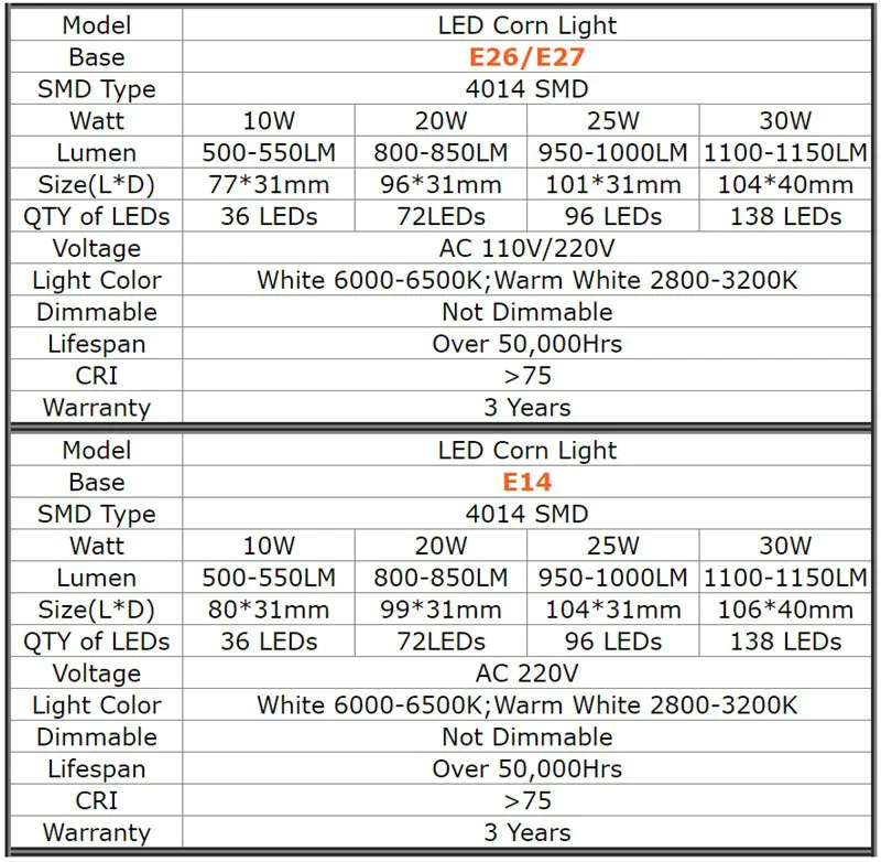 Bright LED Corn Light Bulbs E14 B22 E27 GU10 10W 20W 25W 30W 36 72 96 138LEDs 4014 SMD Lamps Ampoule AC 110V 220V Light Lighting