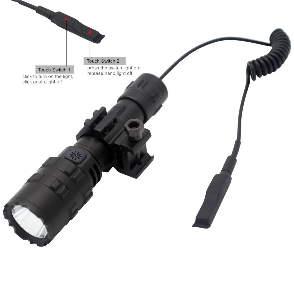 Remote Switch:2 switches-one for button switch, press to turn on the light and second press to turn off the flashlight; one for pressure switch, press all the time to light on and release to light off. Dual-switch tail cap which allows for easy single-hand.