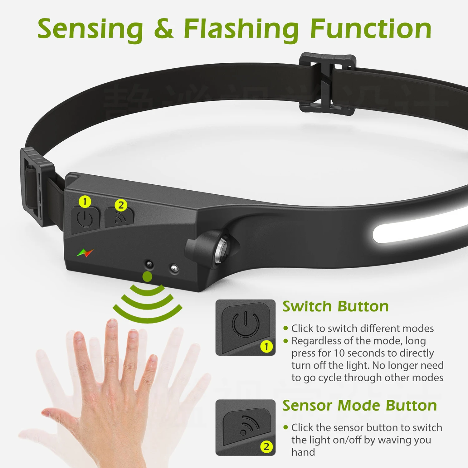 【MOTION SENSOR MODE】 – LED Headlamp Camping Accessories is equipped with the latest intelligent sensors. Even if wearing gloves, as long as the distance from the device is within 10 cm, you can quickly switch the ON/OFF by waving your hand in motion mode.