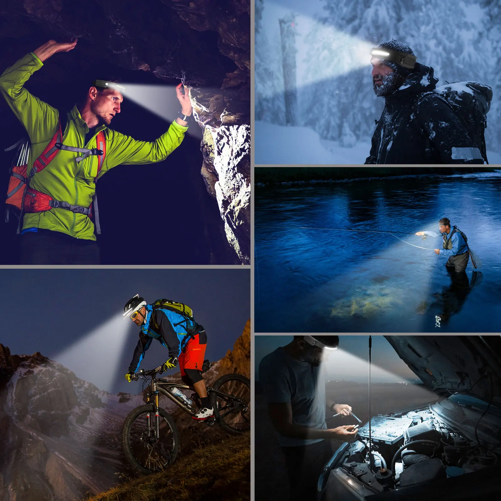 【WATERPROOF & MULTIPURPOSE】 – The headlight is IPX4 waterproof. You don’t need to worry if it rains or snows suddenly. It is ideal for outdoor lovers as camping gear. Whether you are camping, exploring, hiking, cycling, fishing,climbing, repairing and other outdoor or indoor activities, our headlamps are your good assistants.