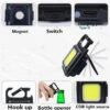 Field Use: Portable torch with key ring, foldable stand, bottle opener and magnetic stand. Use for fishing, hiking and camping, corkscrews, emergency road maintenance or multipurpose work, etc.