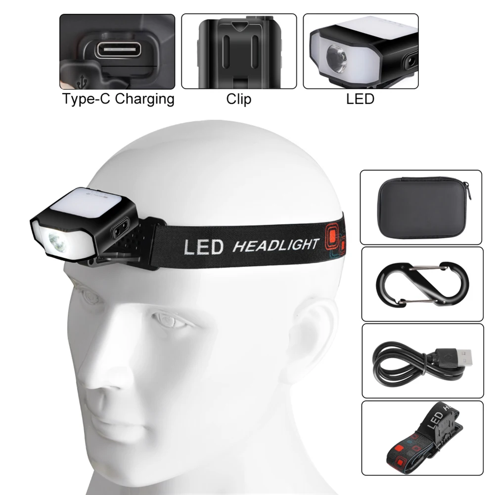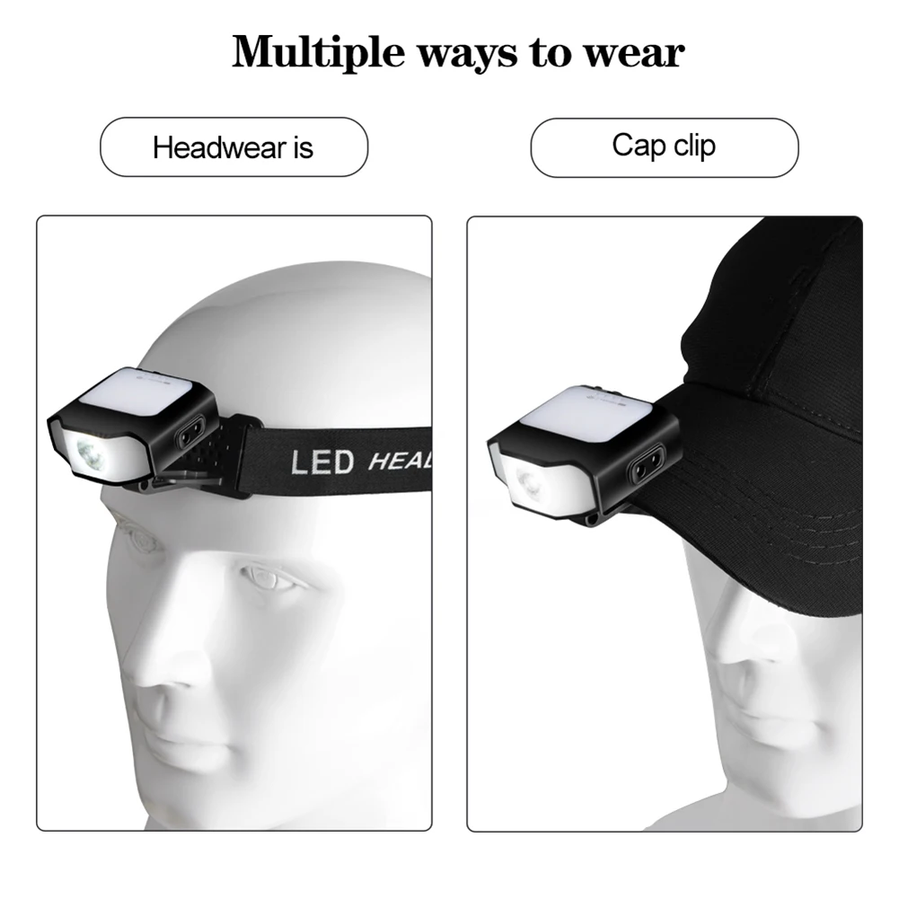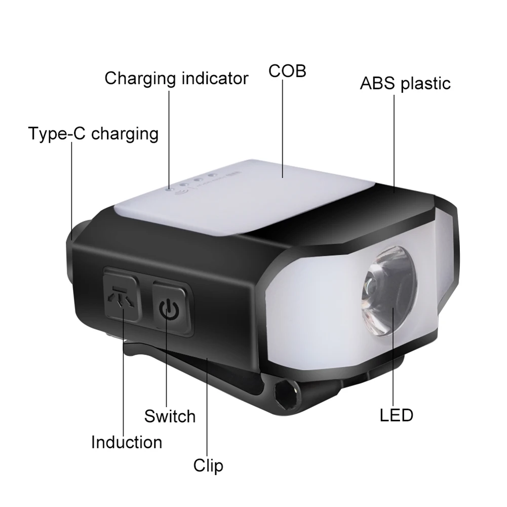 1000mAh Sensor Cap Clip on Light Type-C Rechargeable 400LM COB LED Headlamp 6 Modes Daily Waterproof Multifunctional Work Lights
